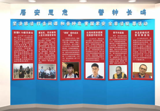 基地陳設(shè)內(nèi)容從“總體國家安全觀”的深刻內(nèi)涵延伸到“身邊的國家安全”,詳細展示了“總體國家安全觀”的誕生、內(nèi)容、體系、制度、法律等,從網(wǎng)絡(luò)、社會、金融、生態(tài)、政治五個方面深入剖析,與每位參觀者息息相關(guān)。最后,從中國共產(chǎn)黨早期的情報保衛(wèi)機構(gòu)在武漢誕生、國家安全大事記的正面引領(lǐng),以及依法打擊間諜和各種危害國家安全非法犯罪活動的反面案例,強化參觀者的國家安全意識。