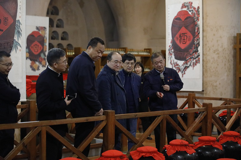 王慶軍一行調(diào)研了公司天成坊釀造車間、名人酒窖、酒文化博物館、黨建文化館等地。許鵬詳細(xì)介紹了黃鶴樓酒釀造工藝、歷史文化淵源及公司核心產(chǎn)品、近期發(fā)展態(tài)勢,他表示,黃鶴樓酒植根荊楚,有著深厚的底蘊,在傳承古韻古法的基礎(chǔ)上結(jié)合現(xiàn)代化科學(xué)技術(shù)創(chuàng)造性提出了“五個三”“洞藏洞釀”等一系列創(chuàng)新舉措,力爭樹立鄂酒新標(biāo)桿。