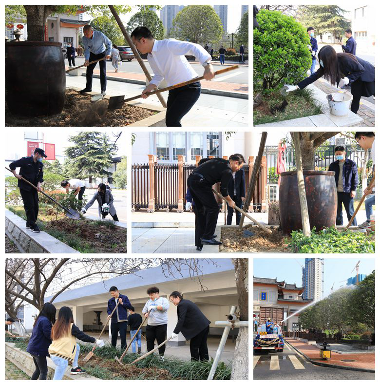 頭頂驕陽(yáng),沐浴春風(fēng),大家揮灑熱情與汗水,齊心協(xié)力、分工合作,為園區(qū)道路兩旁樹(shù)木松土、施肥、澆水,幫助樹(shù)木茁壯成長(zhǎng),共筑綠色家園。