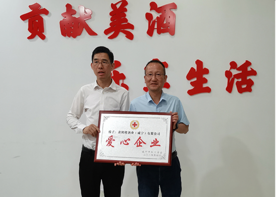 會(huì)上,胡漢雄代表咸寧市紅十字會(huì)向黃鶴樓酒業(yè)(咸寧)有限公司授予咸寧市“愛(ài)心企業(yè)”稱號(hào)。