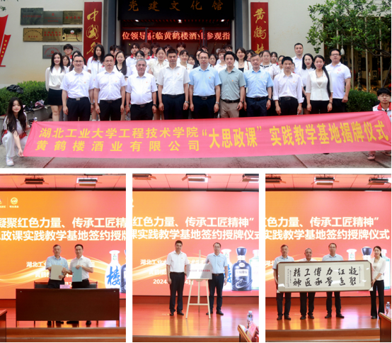 6月24日,湖北工業(yè)大學(xué)工程技術(shù)學(xué)院與黃鶴樓酒業(yè)舉行“大思政課”實(shí)踐教學(xué)基地簽約及授牌儀式。湖北工業(yè)大學(xué)工程技術(shù)學(xué)院黨委書記朱愛軍、副院長姜偉,黃鶴樓酒業(yè)黨委委員、技術(shù)質(zhì)量中心總監(jiān)李良,工會(huì)主席、黨工團(tuán)中心總監(jiān)張瑞,人力資源中心總監(jiān)張佳出席活動(dòng)。